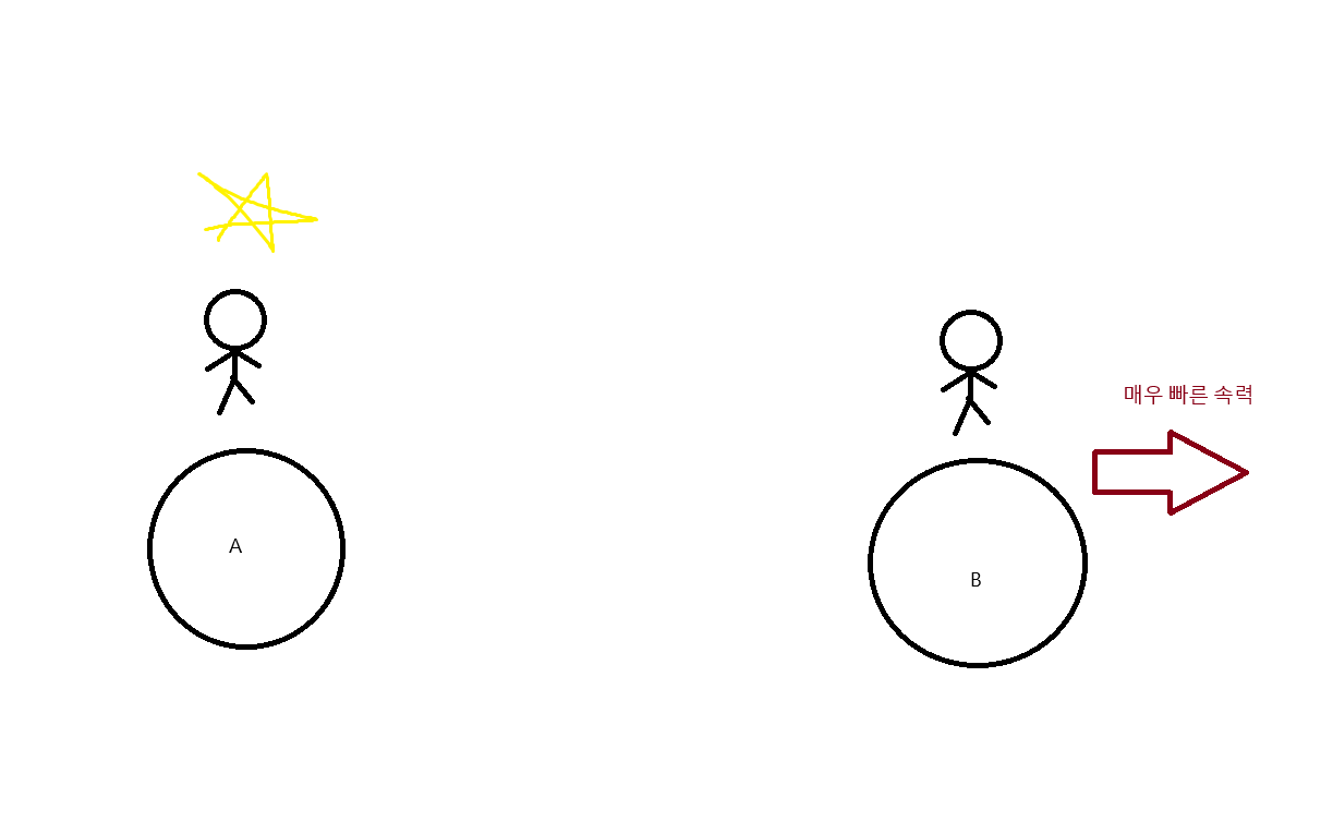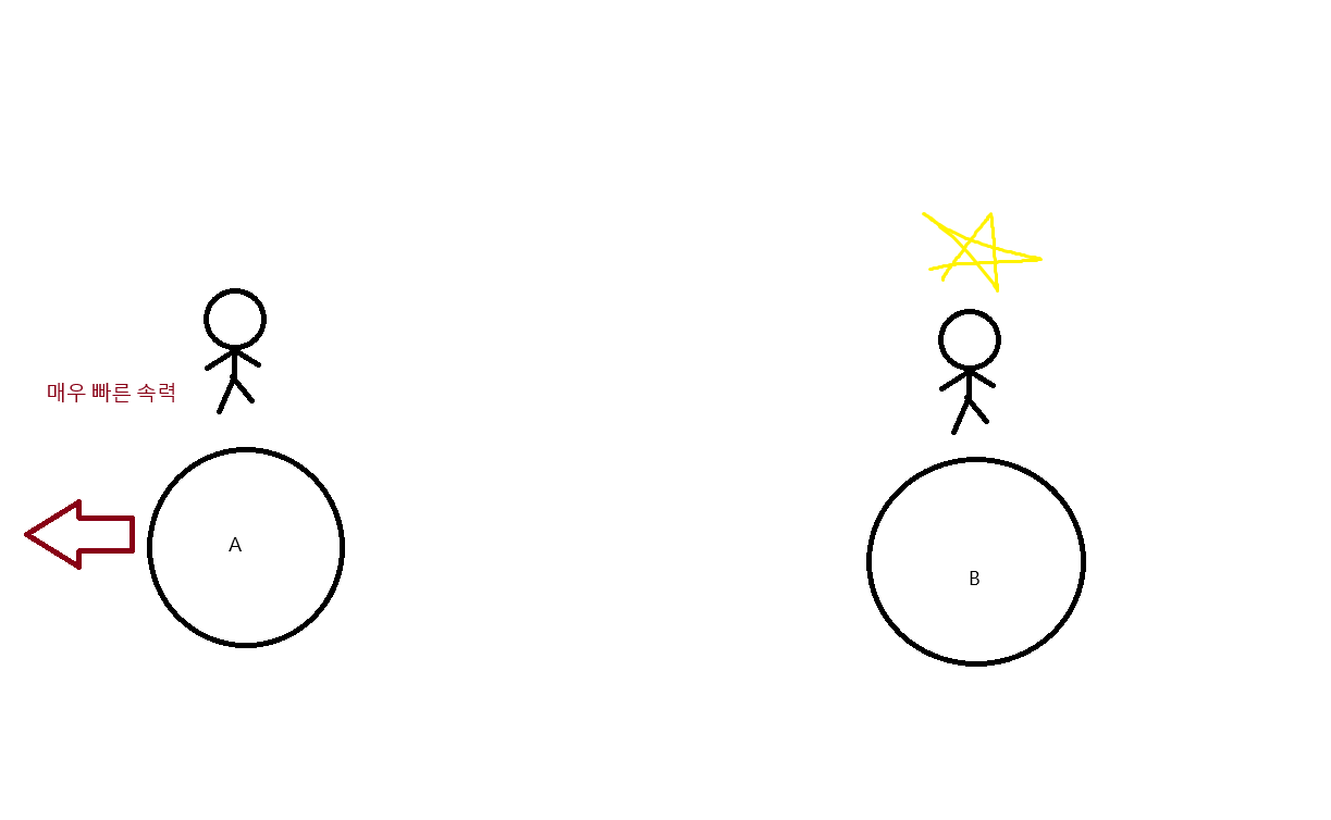 - A행성에서 B의 행성의 사람을 바라보면 시간이 느리게 흘러가는 것처럼 보였다.