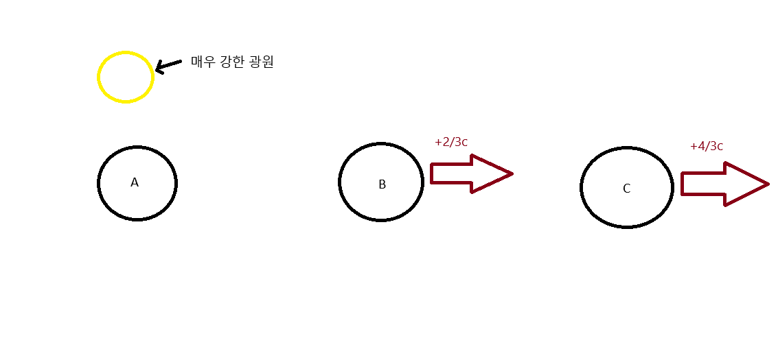 "광원은 4/3c의 속력으로 C행성으로 멀어지고 있잖아요? 빛의 속도는 c인데 어떻게 도달해요?"